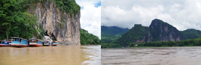 メコン河を遡るクルーズで途中”サンハイ村”に寄り、”パクウー洞窟”に到着