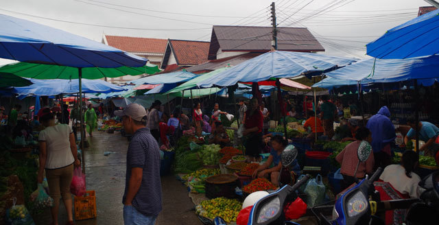 托鉢に参加した後に訪れた地元の市場