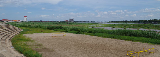 街の中心地を歩いて散策、メコン河まで歩く。