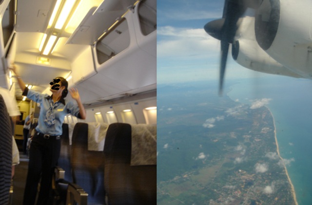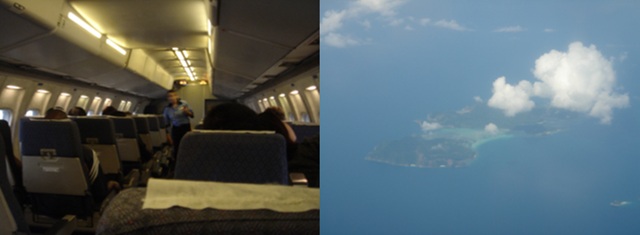 プロペラ機独特の音と揺れの中、一路レダン島を目指す。