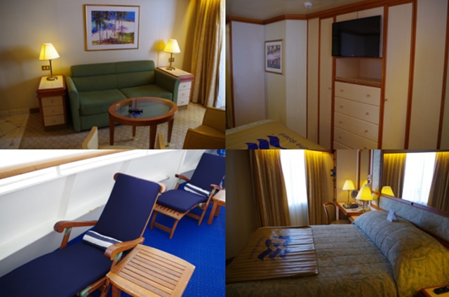 ・アロハ・デッキのスイート(バルコニーが大きいタイプの1つ 上記日本語ウェブサイトとは異なる間取り)。
