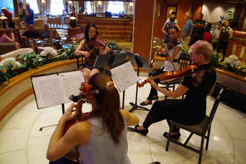 ホールは豪華な装飾で、そのこに響く音楽は、乗船客の気持ちをわくわくさせる効果抜群。