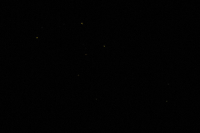 蛍がとまる木は決まっているらしく、ところどころの木に光っている蛍が見られた。