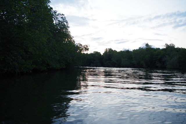 蛍ツアーは、暗くなってからマングローブの林の中を、ボートに乗って移動します。