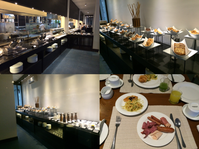 まだ準備も完全ではないレストランでビュッフェの朝食を取る。