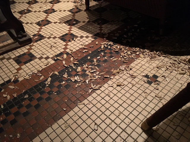 そしてカクテルの真ん中に置いてあるのは、こちらのバーの名物の殻付きピーナッツ、殻は床にそのまま捨てるべし!