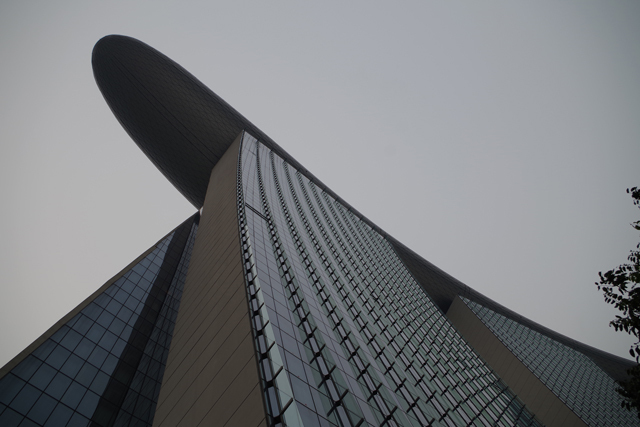 ホテルの建物は、3つあるタワーとその上に乗る船の様な形状の屋上部分で出来ている。