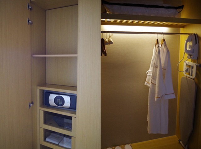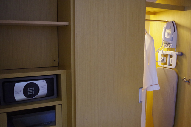 クロセットの中には、セイフティ・ボックス、アイロン、ヘア・ドライヤーなどがある。