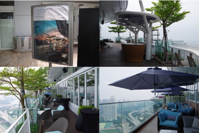 55階部分には上部構造を支える太い柱が突き抜けている(The Club at Marina bay Sands ザ・クラブ・アット・マリーナ・ベイ・サンズ