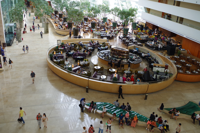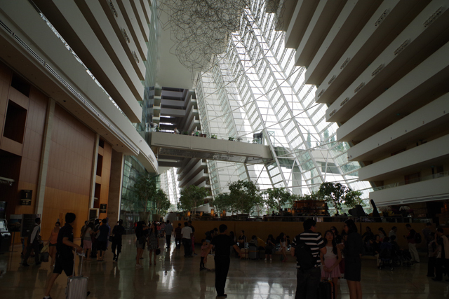 Garden by the Bay(ガーデン・バイ・ザ・ベイ)に向かう歩道橋はホテル内を貫いた空中回路だが、そこに行くにはホテルの外側に出なければならない。
