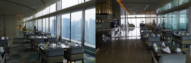 我々は57階のSky on 57(スカイ・オン・フィフティセヴン・バイ・ジャスティン・クエック)を選ばず、タワー1の1階ロビーフロアのRise(ライズ)に行った。