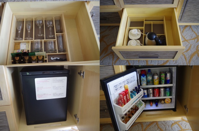 冷蔵庫は飲物を取り出すと自動的に清算されるスタイルなので、飲まないものは取り出さない事
