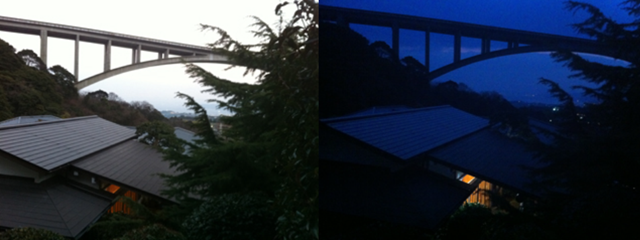 高速道路の高架がいい具合に、別府の街を見下ろす景色のアクセントになっている。