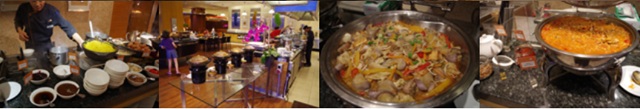 真ん中にオムレツや麺のコーナー