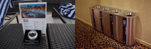プールに面したところが、Le Pool Bar(ル・プール・バー プールサイドでも注文ができるようにメニューとウェイターを呼ぶベルが用意されている)