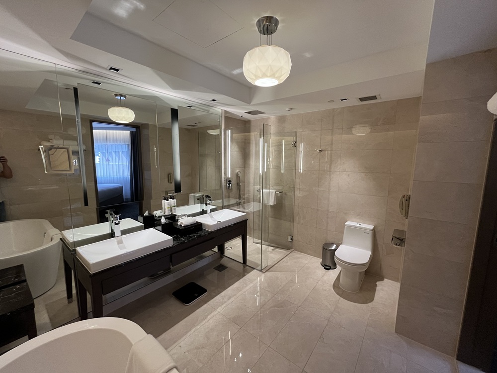 洗面台2つは嬉しいところ、バスタブとシャワーブースがある。