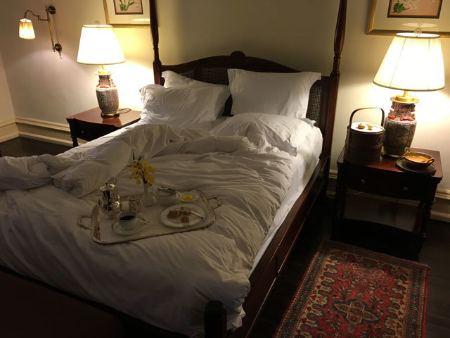 枕元には好きだったとされるカレー、”ラッフルズ・ホテル”の食事は素晴らしいと書いたとか(宿泊施設ではない)?