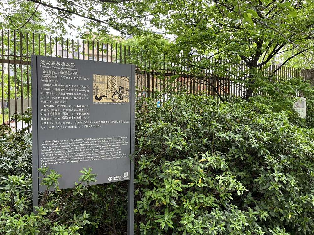 1824年(文政7年)には、外神田のこの場所に転居し、戦国時代の物語をまとめた『近世説美少年録(きんせせつびしょうねんろく)』や、南朝再興の物語をまとめた『開巻驚奇侠客伝(かいかんきょうききょうかくでん)』などを著す。